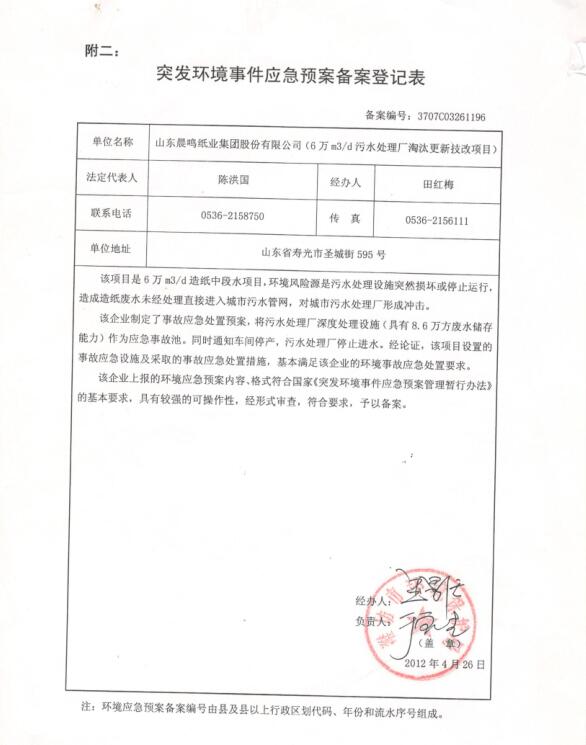 山東晨鳴紙業(yè)集團廢水、廢氣自測公示161205
